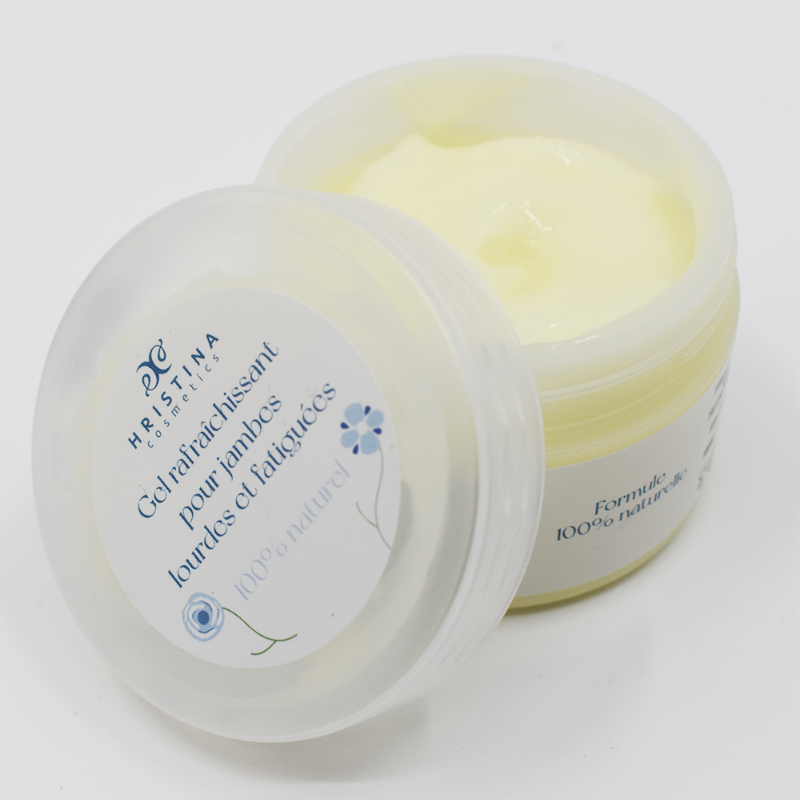 Gel rafraîchissant 100% naturel pour soulager les jambes lourdes et délasser les pieds fatigués.